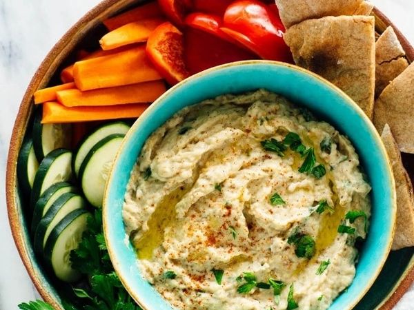 Squeeze out the pulp with your hands and put into a blender together with the tahina, garlic EVO oil, mint leaves and reduce to a cream